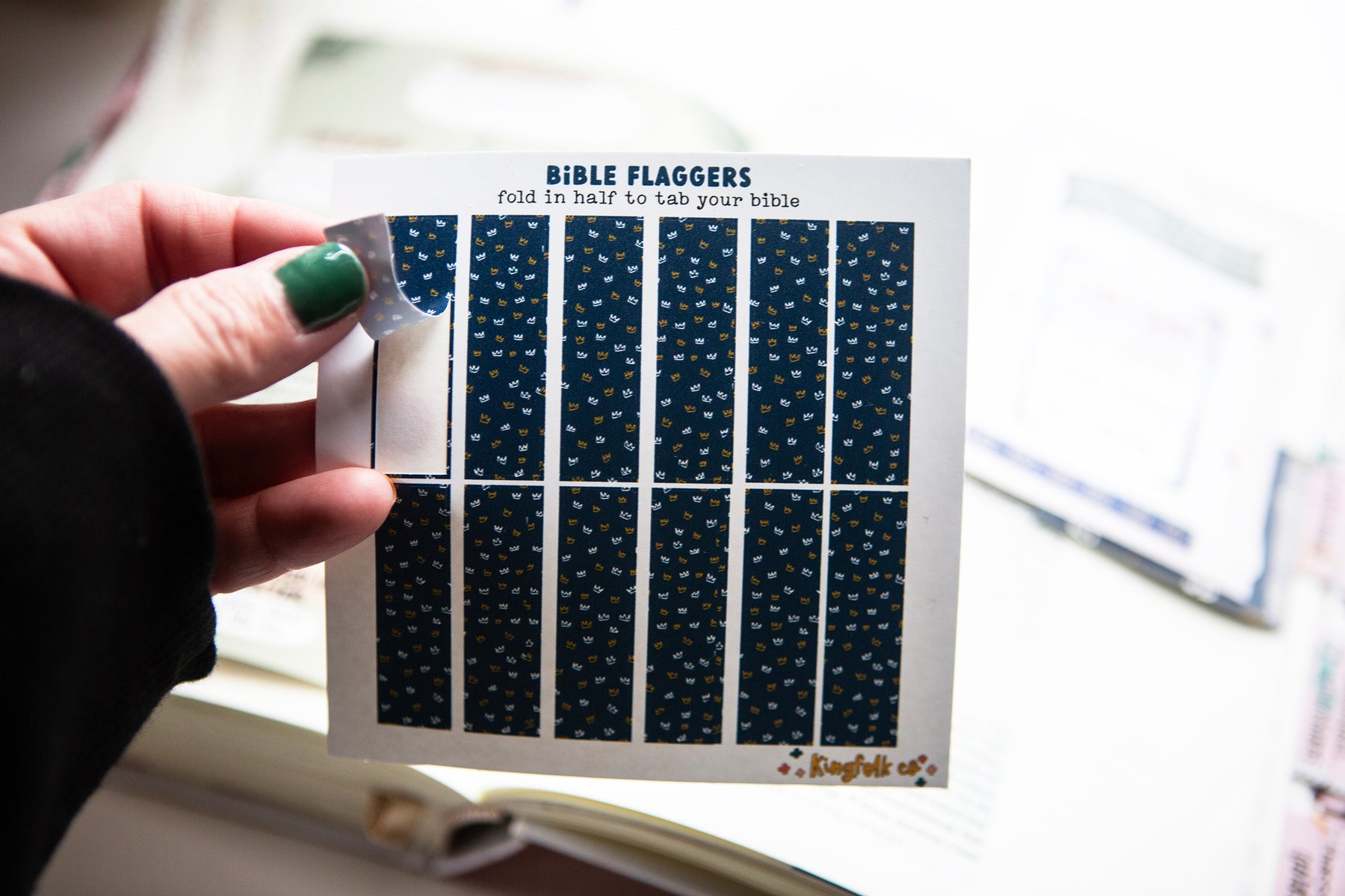 Printed on white vinyl sticker paper, these flaggers are flexible enough to be gentle on your Bible pages, yet sturdy enough to stand out. You’ll love how they help you visually follow the threads of Scripture with ease and clarity.